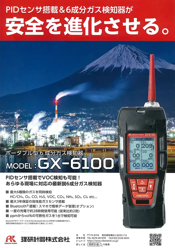 あらゆる現場に対応の最新鋭6成分ガス検知器